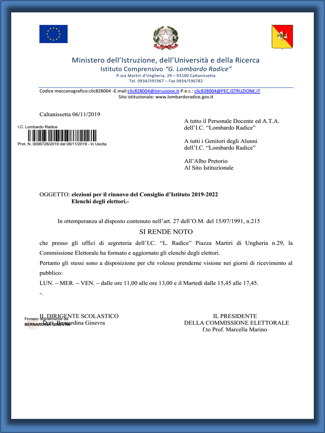 tel 0934 591967 – Fax 0934 596782 - cod. fiscale: 92060590855mail: [email protected] pec: [email protected] Codice FATT_PA: UF6KK4 - Cod. Amm.: iclr_085